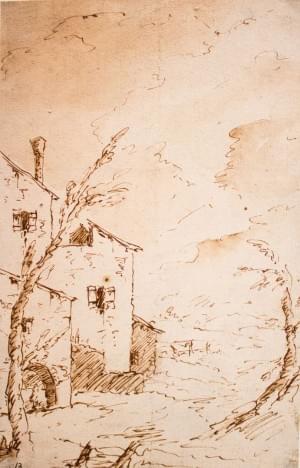 Hameau, encre sur papier, XVIIIe s, 23x33 cm