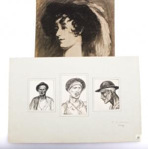 Ensemble de 8 dessins, portraits et personnages