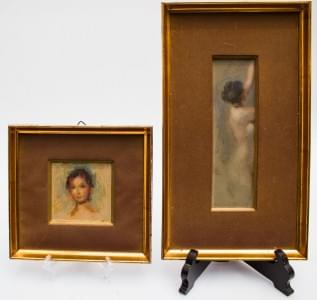 Etudes de jeunes filles, paire d'huiles sur panneau 8x8 et 19x6...