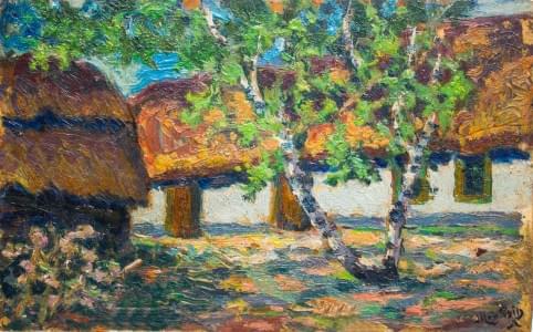 La maison au fond du jardin, huile sur papier, cachet de l'ateli...