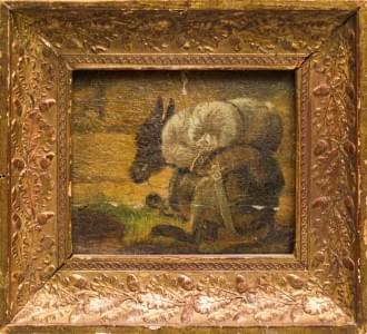Ane au repos, huile sur toile marouflée, 10x12 cm