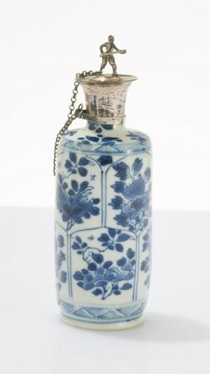 Porcelaine émaillée bleu blanc à décor de fleurs, monture en arg...