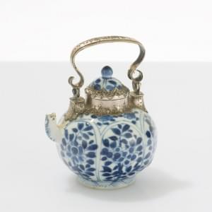 Porcelaine émaillée bleu et blanc, monture en argent, marque à l...
