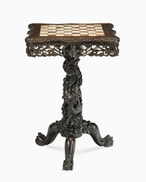 Pied central tripode à décor sculpté d'un dragon, ceinture ajour...