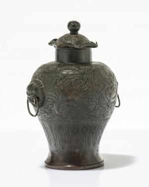 216. Grand vase couvert à décor de pins et de petits animaux en relie...
