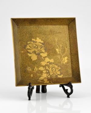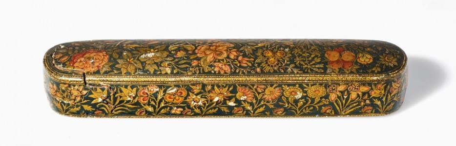 Carton bouilli à décor laqué et peint de fleurs, garniture et en...