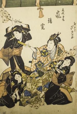 Acteurs de kabuki, deux estampes en couleurs, Japon, époque Edo...