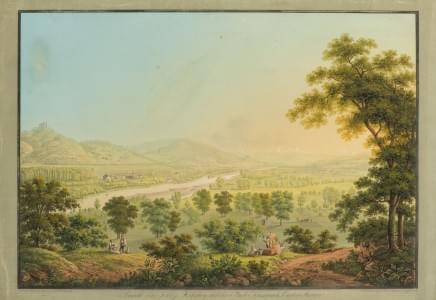 Vue du château de Habsbourg, gravure aquarellée, 46x66 cm
