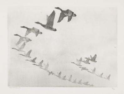 Envol de canards, bois gravé sur papier japon, signé et numéroté...