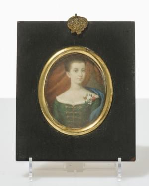 Portrait de jeune femme à la robe verte, miniature ovale sur ivo...