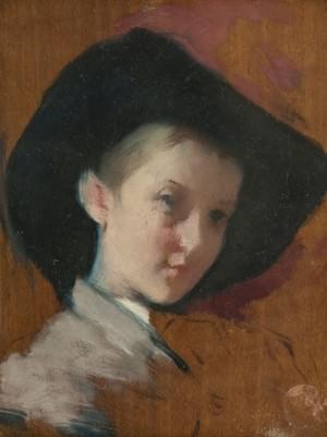 Portrait d'enfant au chapeau, huile sur panneau, 12,5x9,5 cm