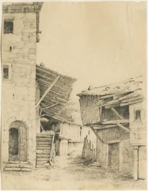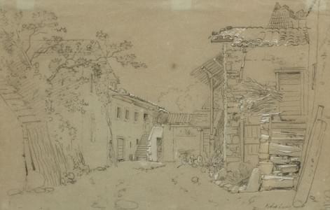 Ruelle de village, mine de plomb et craie sur papier, signée, 26...