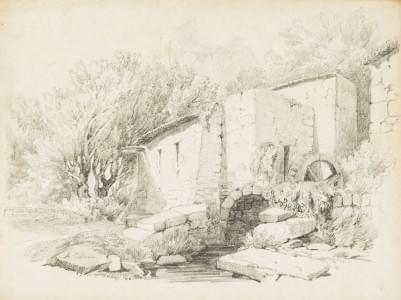 Moulin, mine de plomb sur papier, signée, 23x30 cm