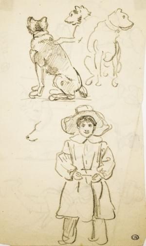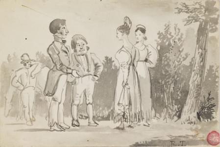 Etude de personnages, suite de deux dessins. On joint un dessin...