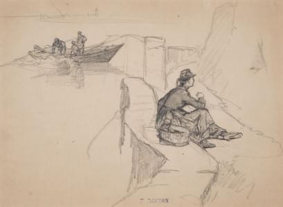 Etude de personnages sur le lac, fusain, 21x29 cm