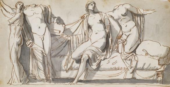 Le triomphe d'Hercule, et étude de bas relief, deux lavis d'encr...