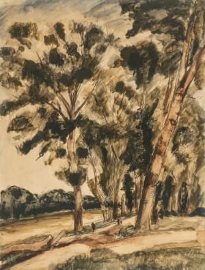 Les arbres au bord du canal, aquarelle et encre sur papier, sign...