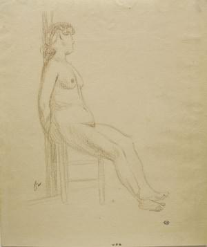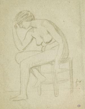 Modèle féminin sur un tabouret, mine de plomb sur papier, monogr...