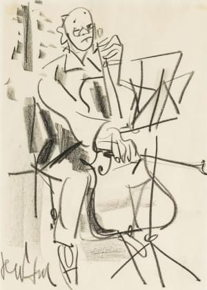 Portrait de Pablo Casals, fusain sur papier signé, 28.5 x 19.5 c...