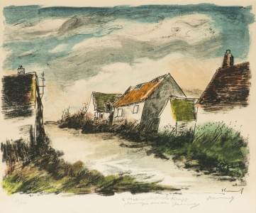 Village, lithographie signée, dédicacée et numérotée 18/200, 40x...
