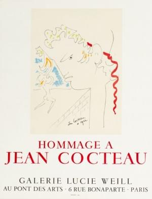 Affiche originale "Hommage à Jean Cocteau" galerie Lucie Weil, l...