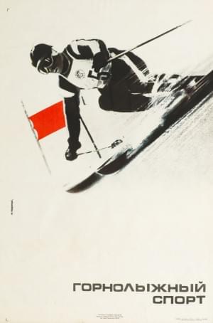 Affiche originale "Ski alpin" lithographie datée 1976, Moscou, 9...