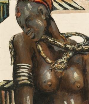 Femme noire au serpent, huile sur panneau, 28x24 cm