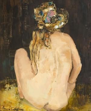 Jeune femme nue de dos, huile sur toile signée, 46,7 x 38,5 cm