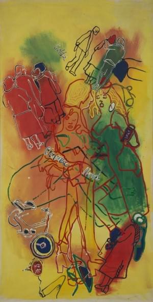 Rue Montorgueil, acrylique sur toile signée et datée 1983, 190,5...