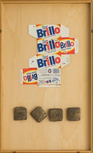 Emballage Brillo, quatre tampons, technique mixte, signée, pièce...