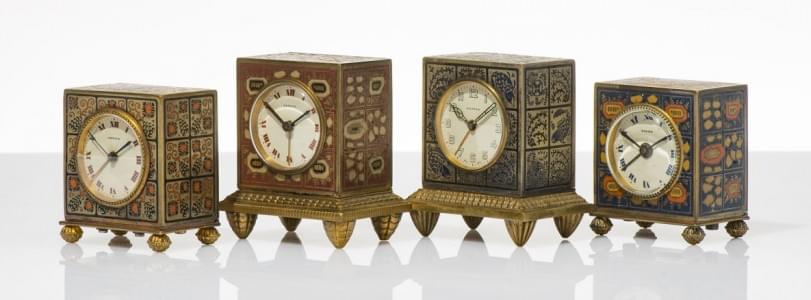 Boîtier en métal doré et émail polychrome, modèles dessinés Alph...