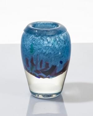 Vase, verre teinté bleu avec éclats colorés dans la masse, signé...