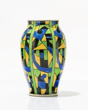 Céramique émaillée vert, jaune, bleu et noir à décor de formes g...