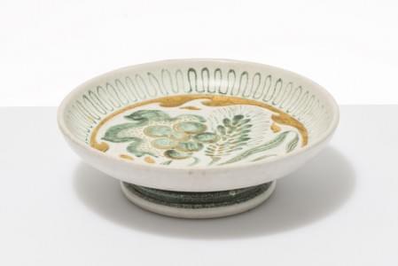 Céramique émaillée blanc, vert et or à décor d...