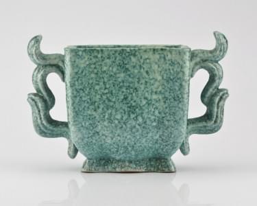Vase à anses "Cornes de vache", céramique émaillée turquoise, Po...