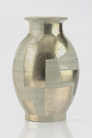 Vase balustre, abstraction argentée, céramique émaillée gris mat...