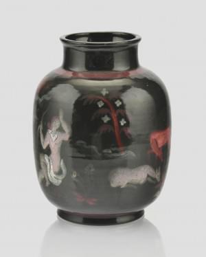 Vase à col, Personnage, céramique émaillée noir, monogrammée MK,...