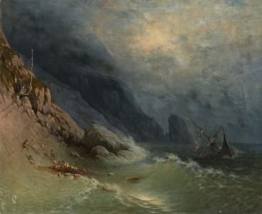Naufrage de la frégate ottomane Ertuğrul, huile sur toile, 49x60...