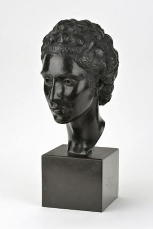 Tête de femme, sculpture en bronze patine noire, signée, cachet...