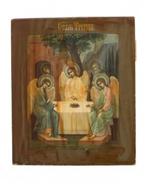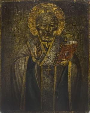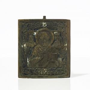 Icône sur panneau et oklade en argent, orfèvre B.C, contrôleur A...