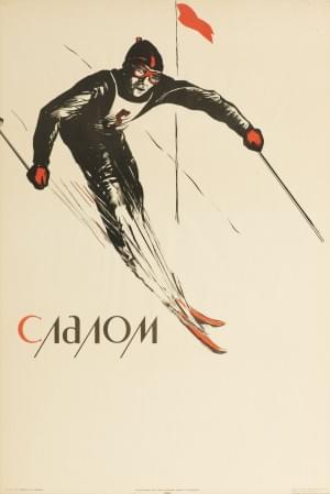 Affiche originale "Slalom", lithographie datée 1965, Moscou, 90x...