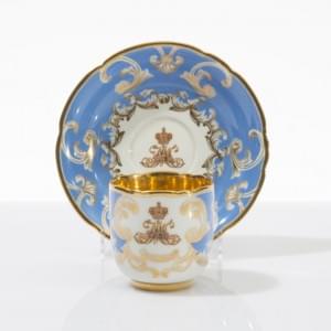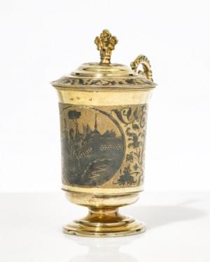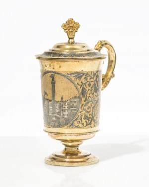95. Tasse couverte à décor niellé du palais d'hiver dans un médaillo...