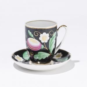 68. Tasse et soucoupe à décor de fleurs sur fond noir
