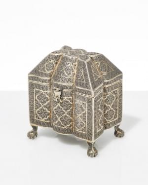 70. Coffret formant encrier en filigrane dessinant des motifs d'arab...