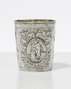 89. Timbale à décor repoussé de médaillons représentant un lion, un...