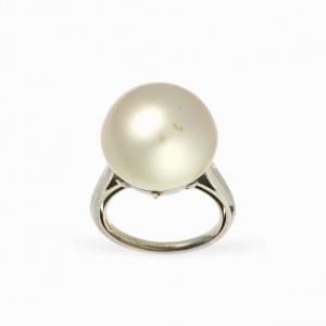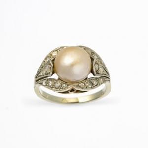 418. Bague sertie d'une demi-perle épaulée de roses de diamant