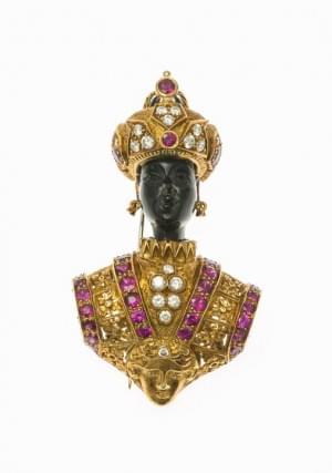 422. Nardi, broche Moretto figurant un buste en turban serti de diama...