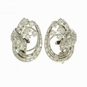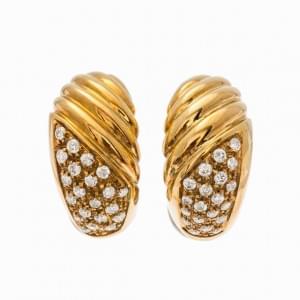 440. Paire de clips d'oreilles godronnés semi-pavés de diamants