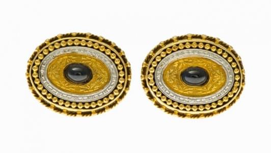 429. Paire de boutons de manchettes ovales sertis de saphirs