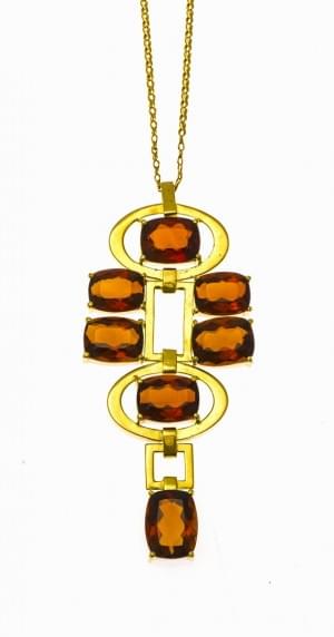 431. Collier retenant un important pendentif stylisé serti de citrine...